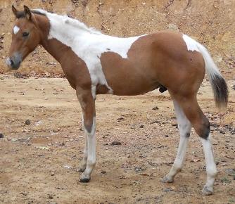 July 1, 2014 Bay Tobiano Colt out of Bandit Queen and Ben's Lover Boy