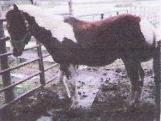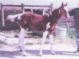 Brown Tobiano Gelding out of Solid Sorrel AQHA dam. Pictured as Foal and adult