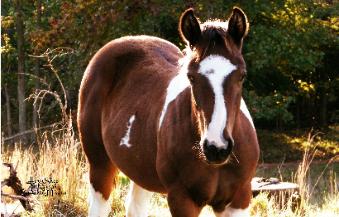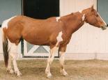 Sorrel Tobiano Gelding out of Solid Sorrel AQHA dam. Pictured as foal and adult