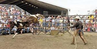 Ben's Beau Dillon Bars at the Illinois State Fair being trained to ride by Craig Cameron