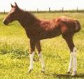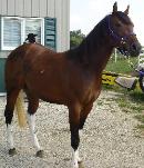Bay high stocking Gelding out of Solid Sorrel AQHA Mare Pictured as foal and adult