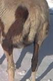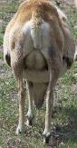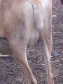 | These are pictures of Painted Desert Sheep that are showing close Mouflon influences, note the short tail length or white or light underpinnings which can be seen even with spots. |