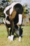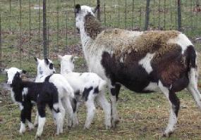 | The sheep above have longer tails and their past ancestors of possible Barbado or blackbelly breeding could influence this. Note the longer tails, and black underpinnings even though they are spotted. Although other breeds could influence this.... |