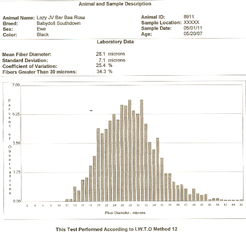 | Lazy JV Barbaarosa (Peggy 35476) NABSSAR and OEBR # 8911 Ewe - Black on 7-11-2008: 20 inches tall - 70lbs Codon Test: QR |