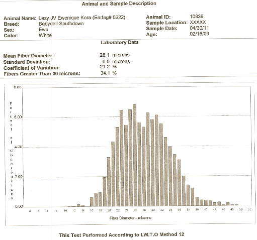 Wool Testing Results for Lazy JV Ewenique Kora